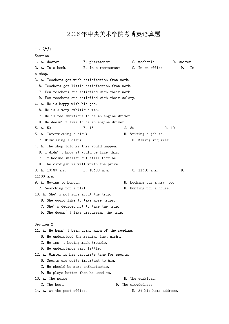 【文档名称】 2006年中央美术学院考博英语真题(Word版).doc