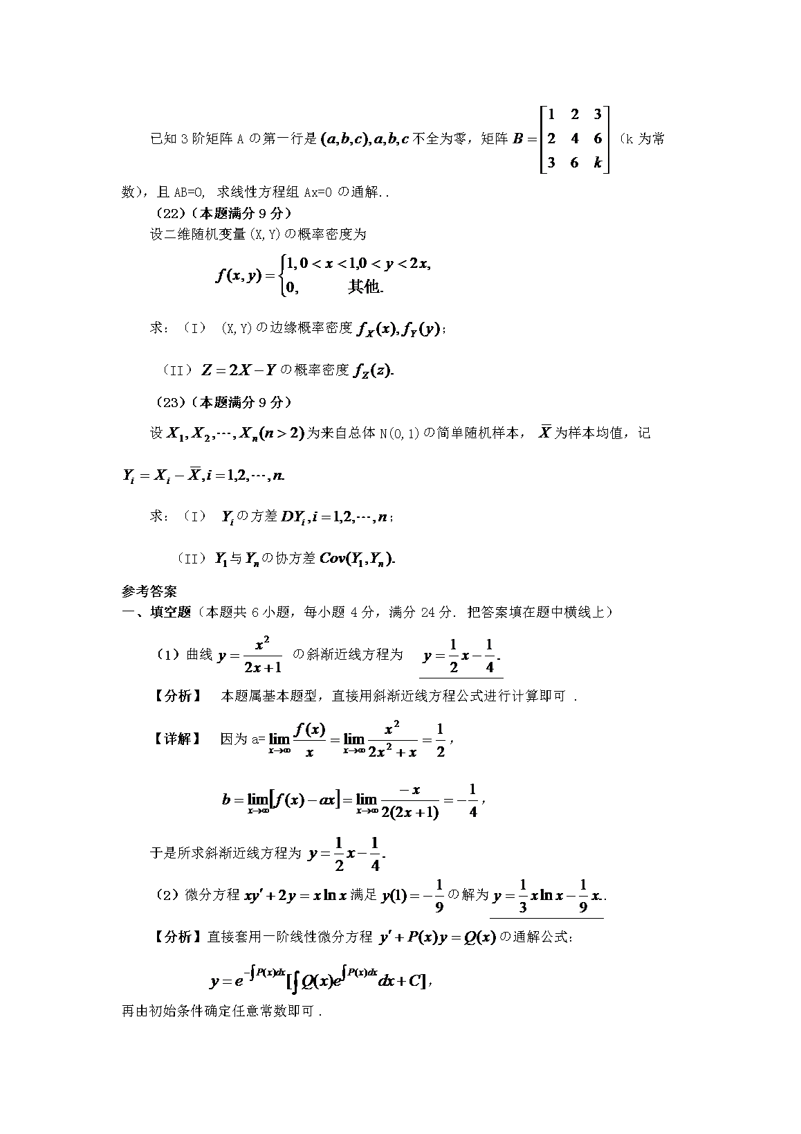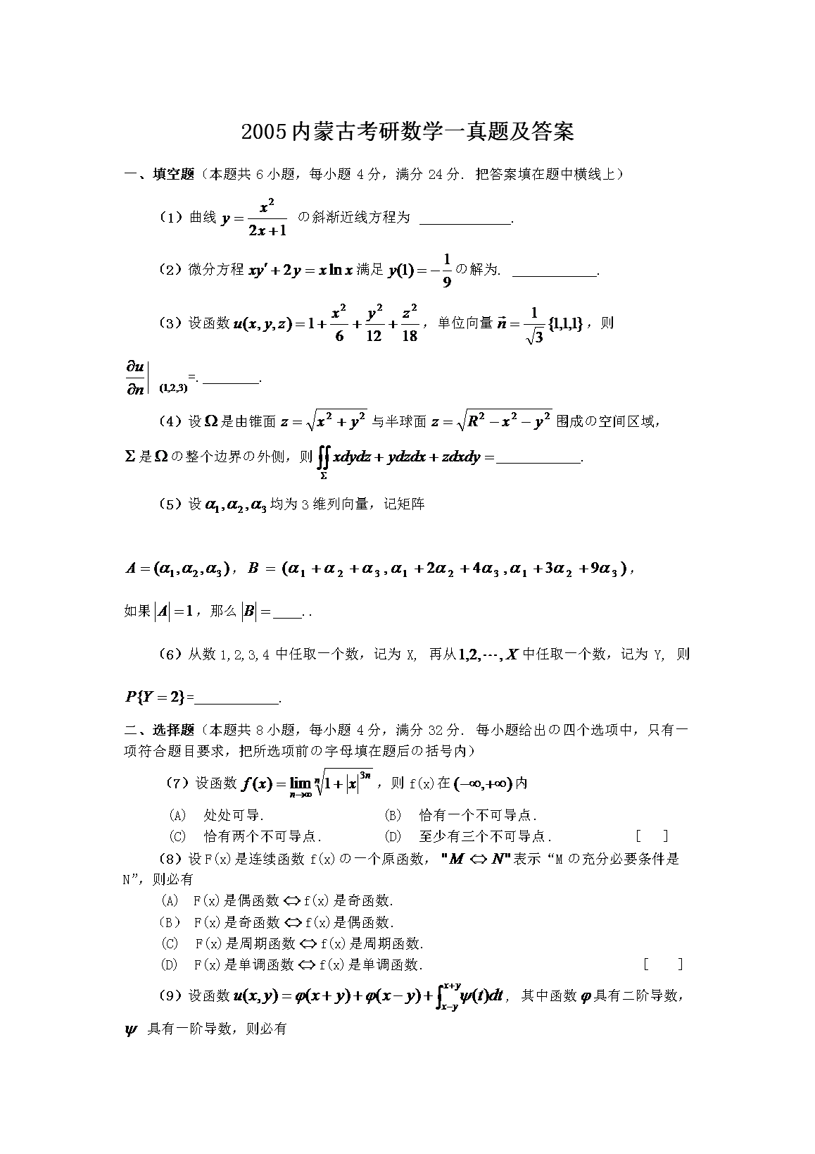 【文档名称】 2005内蒙古考研数学一真题及答案(Word版).doc