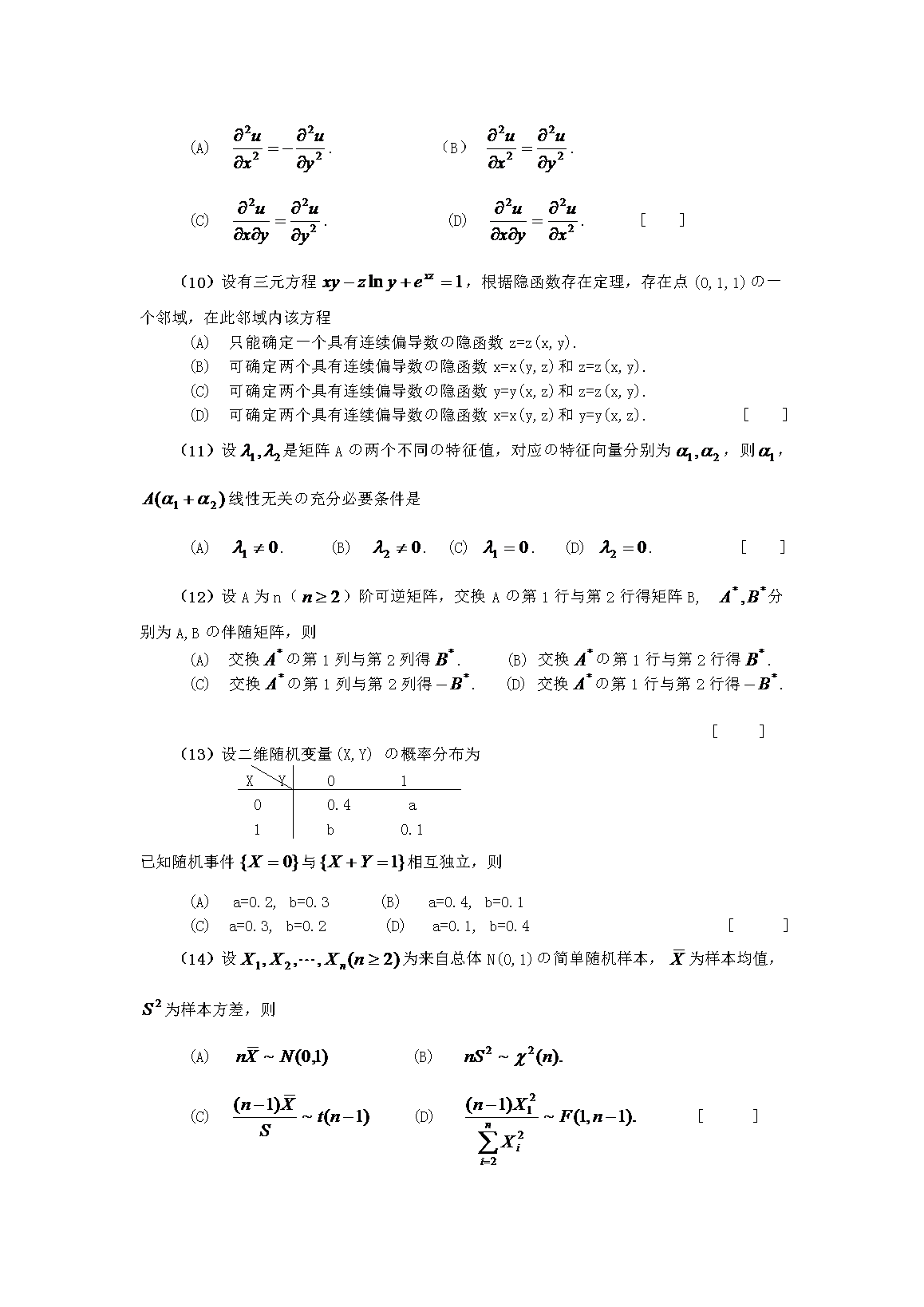 【文档预览】 无忧考网整理发布2005内蒙古考研数学一真题及答案(Word版),前五页预览如下: